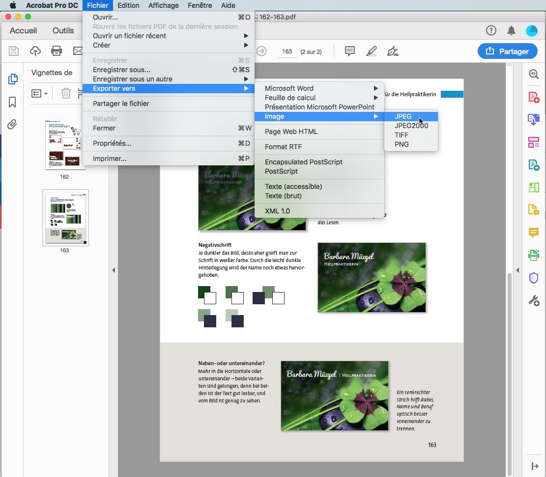 Exporter des fichiers JPG depuis Adobe Acrobat