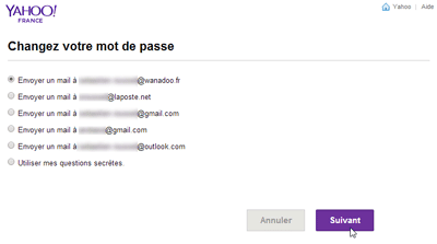 À ce moment, Yahoo ouvre plusieurs portes pour récupérer votre compte :