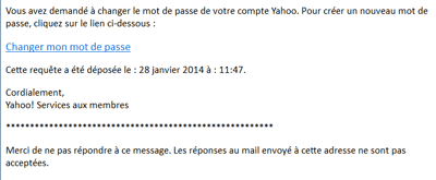Lorsque l’adresse de secours est choisie, ouvrez la boîte associée : un mail signé Yahoo s’y trouve, avec un lien disponible pendant 24 heures pour réinitialiser les accès à votre compte principal.