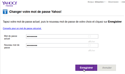 Yahoo va vous demander de confirmer votre identité en saisissant une nouvelle fois votre mot de passe actuel. Ensuite, repérez le lien « Modifier votre mot de passe » pour ouvrir le bon formulaire.