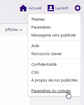 Il arrive aussi qu’on veuille changer de mot de passe par simple prudence, ou pour renforcer la sécurité. Connectez-vous à Yahoo Mail, cliquez sur l’icône en forme de roue dentée en haut à gauche, puis accédez aux « Paramètres du compte ».